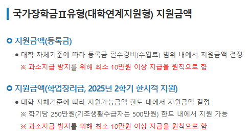 또한, 2025년 2학기에는 ‘학업장려금’이 한시적으로 운영되어 학자금 지원 5구간 이하 학생에게 추가 지원이 가능합니다.
